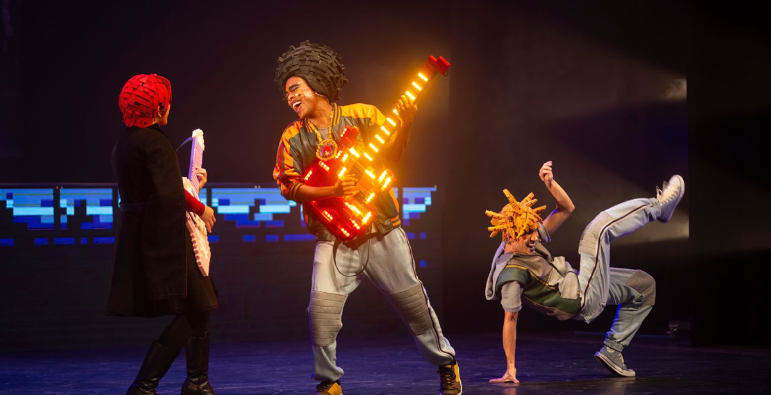 “Como a história do espetáculo se passa dentro de um videogame, o cenário é todo virtual”, explica Bustamante. Ele conta que para criar a atmosfera, o público assiste em painéis de Led tradicional, a projeções com ambientes e criaturas no formato quadriculado, que lembram o videogame retrô de 16 bits. “Como por exemplo, algo próximo dos cenários de Super Mário e outros grandes ícones do videogame 2D, que não tem a pretensão de fazer o mundo virtual igual ao mundo real”, comenta.