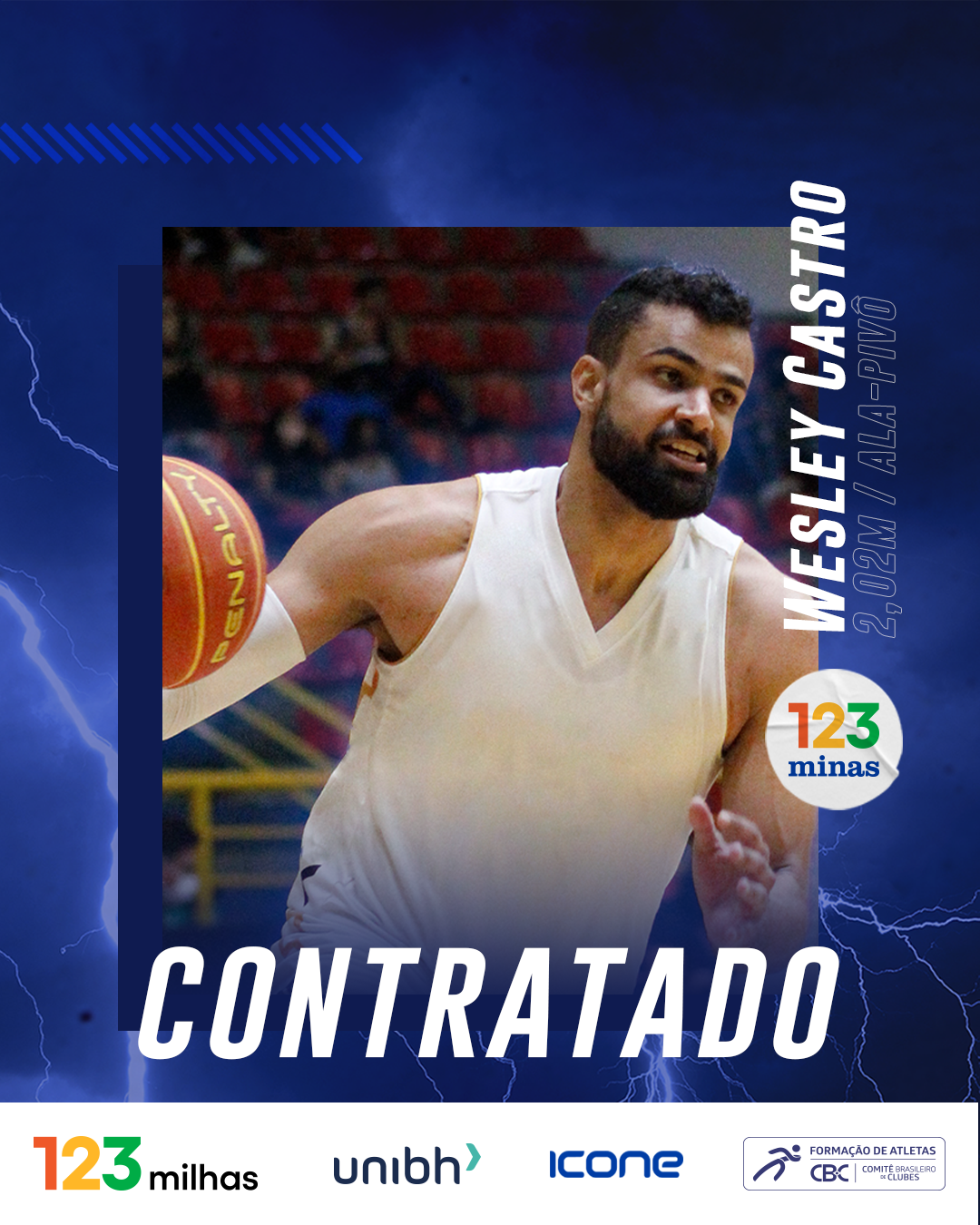 Ele está de volta! Após duas temporadas atuando pelo Mogi das Cruzes e uma pelo Corinthians, o ala-pivô Wesley Castro está de volta ao 123 Minas. O atleta de 26 anos e 2,02m é o primeiro reforço anunciado pela diretoria minastenista e a 123milhas para a disputa da temporada 2022/23.