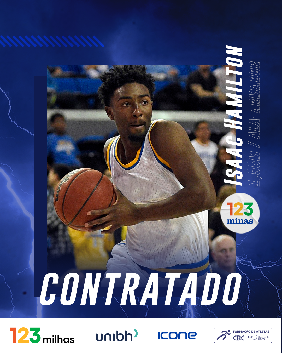 O ala-armador Isaac Hamilton é o mais novo atleta anunciado pela diretoria minastenista e a 123milhas para reforçar o 123 Minas na disputa da temporada 2022/23. Aos 28 anos, o americano de 1,96m tem passagens pelo basquete universitário, onde atuou por UCLA, e na liga de desenvolvimento da NBA, a G-League.