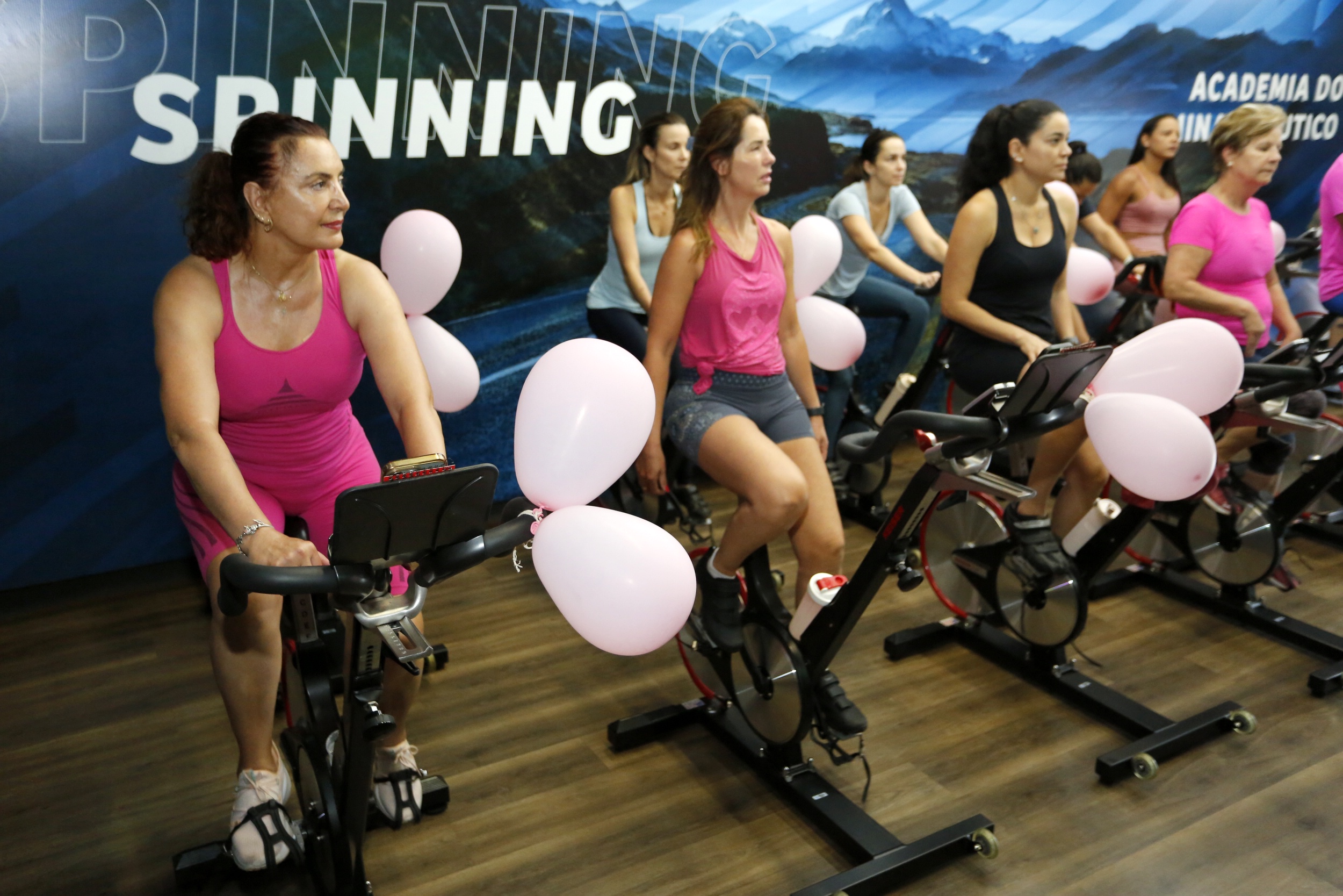 Evento reuniu corrida, spinning e yoga em um sábado dedicado a prevenção do câncer de mama.