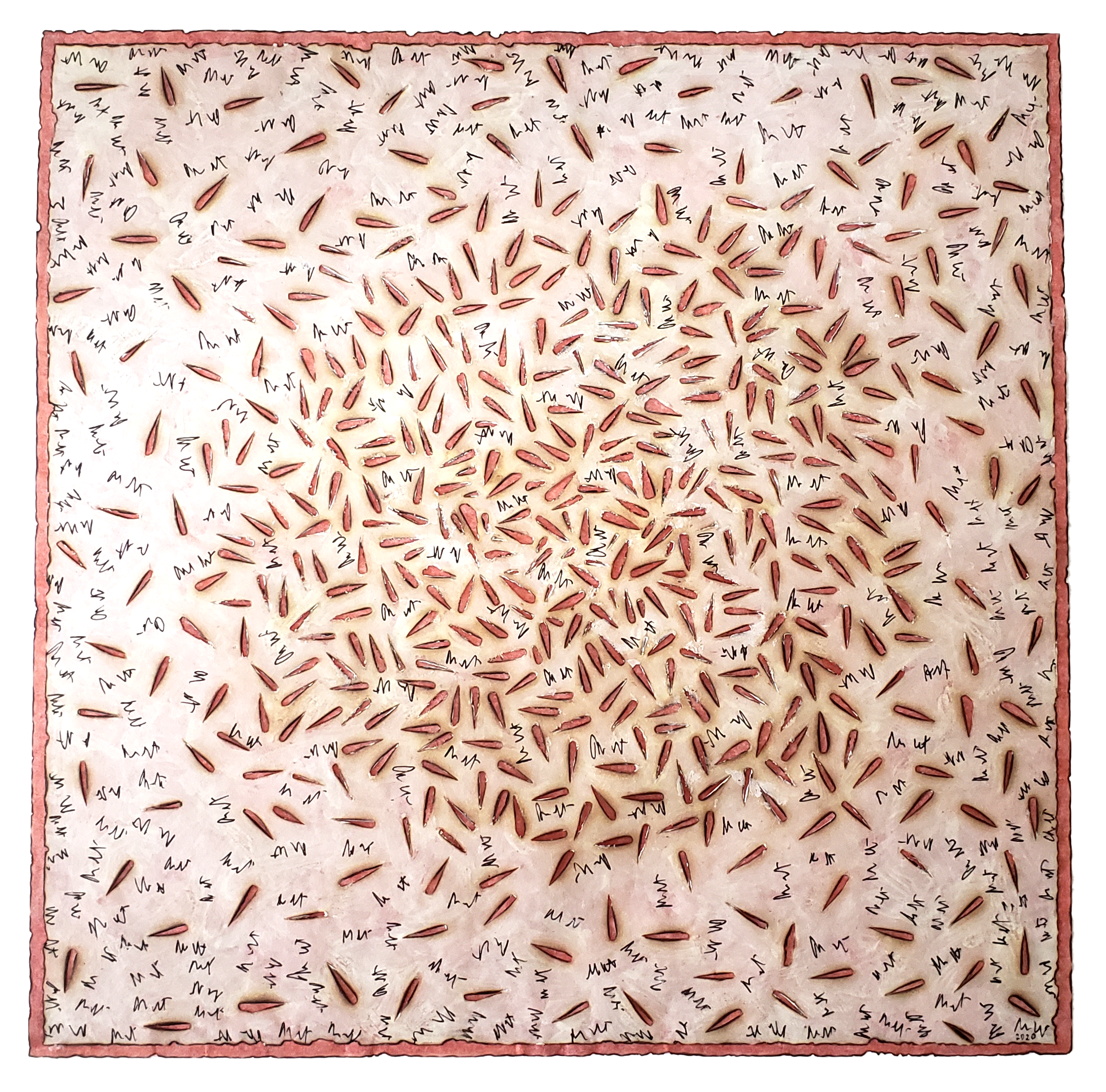 Estarão no espaço 14 obras de pequenas dimensões variadas, que vão de 21 x 21 cm até 37,5 x 24,5 cm – a maior delas. Segundo Ronald Polito, “a inspiração só está no título que é um verso levemente modificado de Cazuza. As palavras “raspas” e “restos” expressam bem o que as obras mostram. Como queimo os papéis, fico com o que resta deles”, explica.