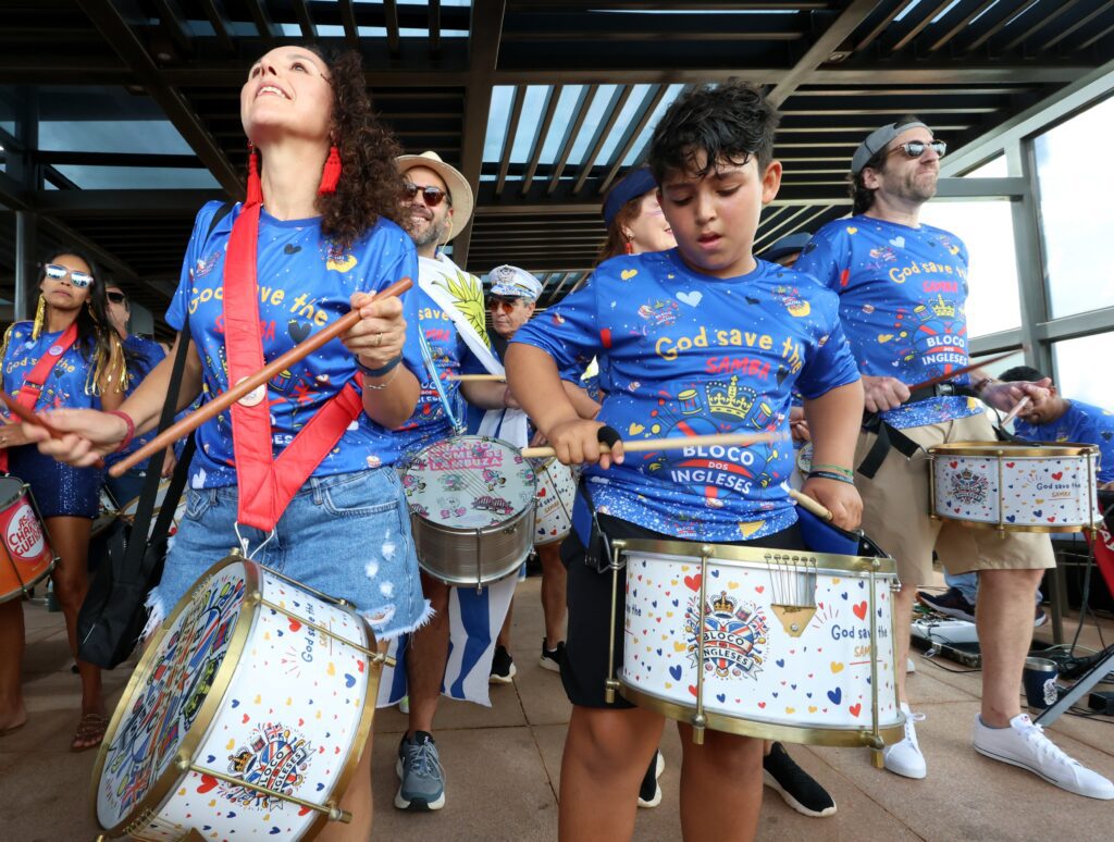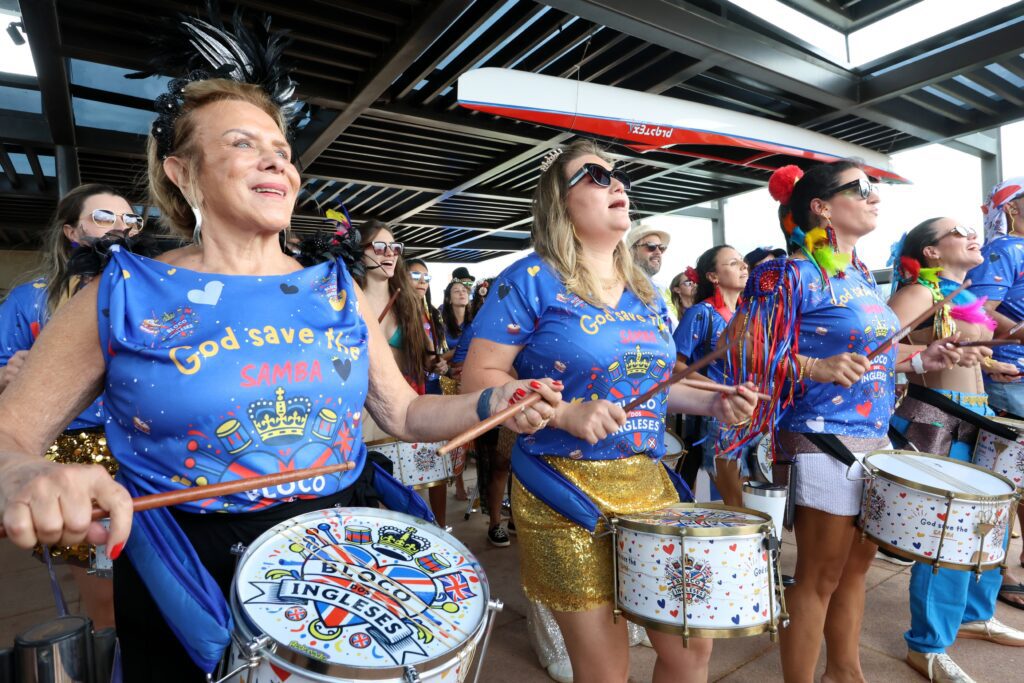 Muita alegria, música e energia durante o ensaio de pré-carnaval do Bloco dos Ingleses.