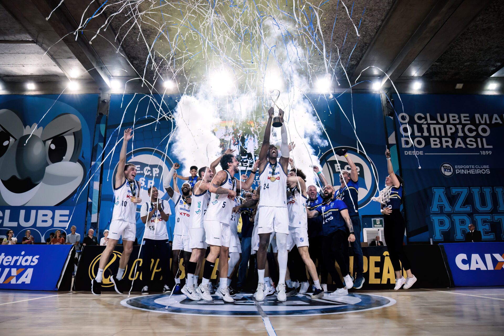 É campeão! Com grande atuação coletiva, o KTO Minas venceu com autoridade o Pinheiros por 85 a 62, neste sábado (31/1), no Ginásio Henrique Villaboim, em São Paulo (SP), e conquistou o bicampeonato da Copa Super 8 — 2022 e 2026 —, o segundo título nacional da história do Basquete minastenista. O ala-armador Danilo Fuzaro foi eleito o melhor jogador do torneio (MVP).