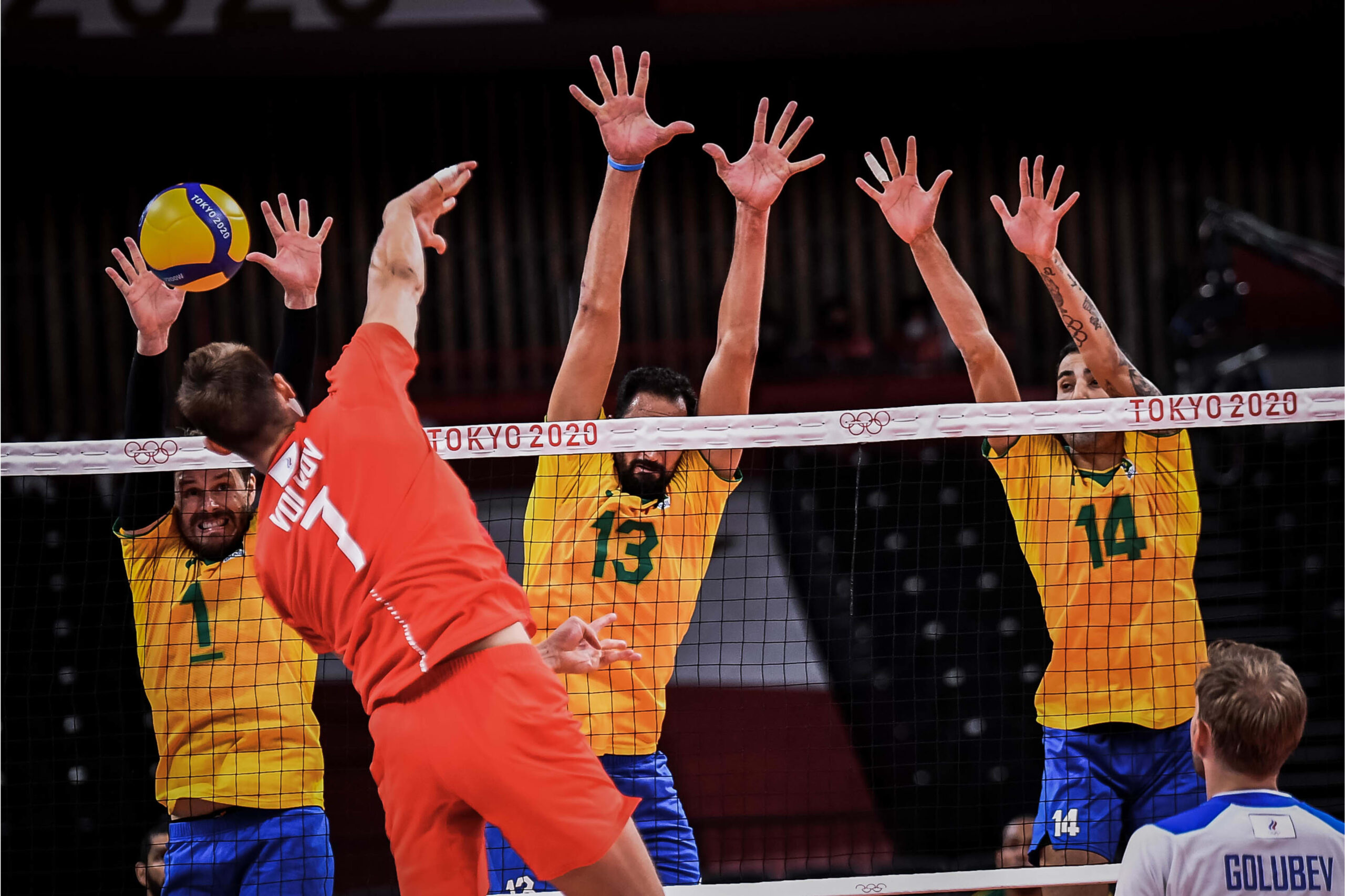 O Brasil perdeu seu primeiro jogo no maior evento esportivo do mundo, em Tóquio. A Seleção foi superada pelos Atletas da Rússia por 3 sets a 0, com parciais de 22/25, 20/25 e 20/25. Apesar da derrota, o central minastenista Maurício Souza foi o segundo maior pontuador brasileiro da partida, com sete pontos somados, e teve atuação consistente na Ariake Arena.