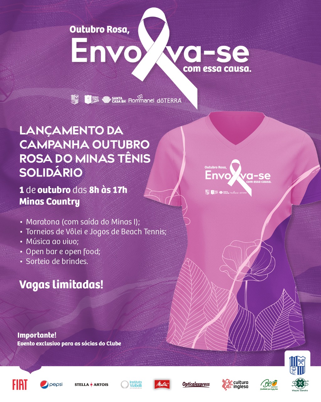 O evento é exclusivo para mulheres, associadas do Minas Tênis Clube e Minas Náutico. Venha participar!
