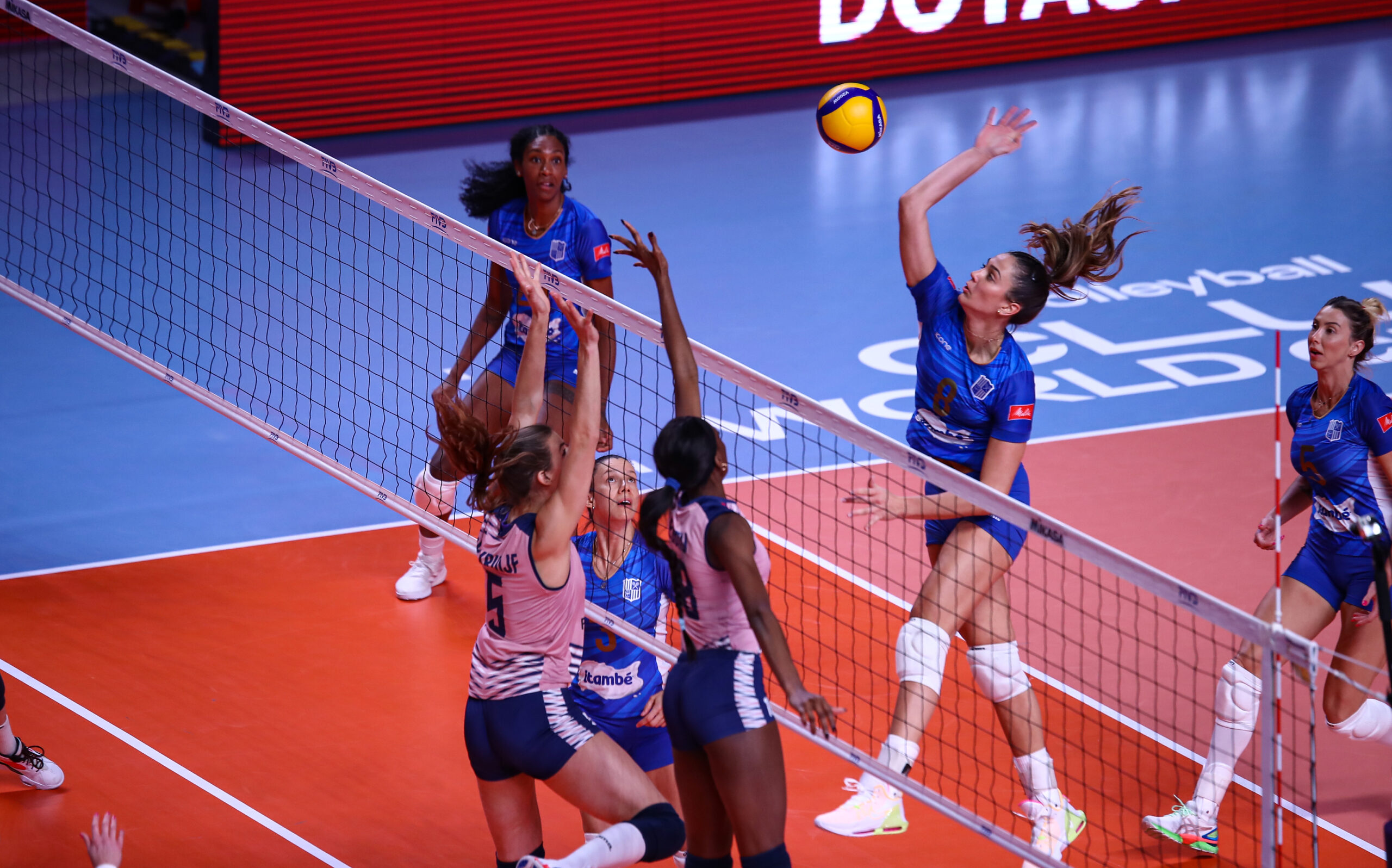 Oposta do Itambé/Minas, Dani Cuttino, foi um dos destaques da semifinal (Foto: Divulgação/@volleyballworld)