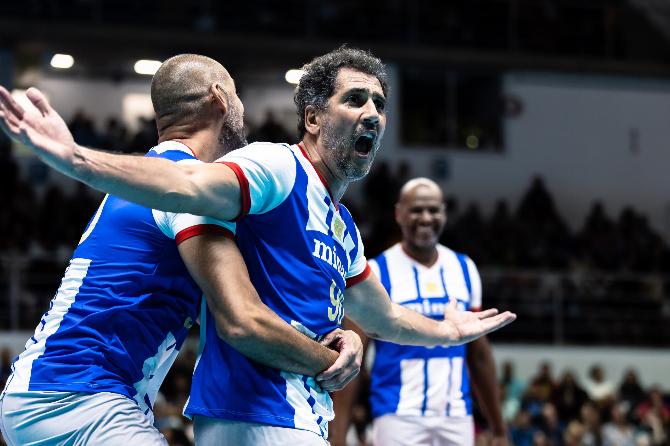 A Arena UniBH foi palco de uma noite inesquecível para o esporte brasileiro, nesta quarta-feira (23/7), com a realização do Encontro dos Tricampeões. O evento comemorou os 90 anos do Minas Tênis Clube com um duelo histórico entre grandes nomes que marcaram gerações vitoriosas do vôlei minastenista: os elencos do Fiat Minas, tricampeão nacional nas temporadas 1984, 1985 e 1986, e do Telemig Celular Minas, tricampeão da Superliga entre 1999/00 e 2001/02.